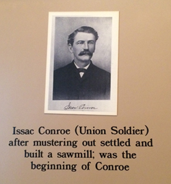Conroe is located about 40 miles north of Houston on Interstate 45. The city was named after Isaac Conroe, a Northerner who moved to the Houston area after mustering out of the Union army. Settling on a locale on the edge of the Piney Woods, Isaac Conroe built a sawmill that brought many new residents to the area and the ensuing city was appropriately named Conroe. The city was only a little over a 5 square mile area when it was first incorporated but, according to Wikipedia, the city limits have expanded to 72.0 square miles in 2007. The city of Conroe has a very aggressive performing arts program with two professional theater venues - The Crighton Theatre and The Owen Theatre. Other points of interest include several local breweries, the W. G. Jones State Forest, the Conroe Art Gallery, The Heritage Museum, and Lake Conroe.