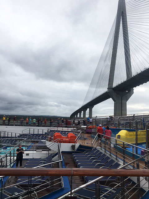 She was all decked out in Halloween finery and everything was immaculate and looked brand new. We wandered through the Atrium area and then made our way up to the Lido deck for a late lunch and later, to watch as we slowly left the dock and headed south in the Gulf of Mexico. We were off to the Panama Canal and back!